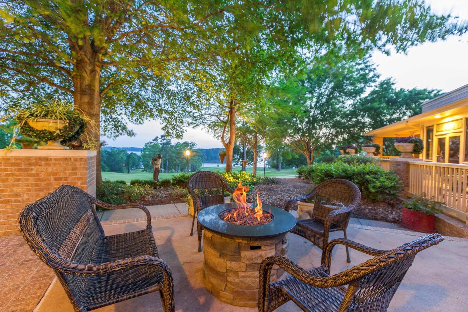 The gallery captures the resort’s balance of nature and comfort, beginning with sweeping shots of Toledo Bend Lake and the rolling greens of the golf course. Interiors lean toward a lodge-inspired aesthetic—stonework, soft lighting, and warm woods—creating a relaxed atmosphere throughout the rooms and common areas. Pool images highlight both the indoor and outdoor settings, while the spa and fitness spaces bring a calm, restorative tone. Dining photos reveal casual layouts with views of the surrounding landscape. The outdoor trails, patios, and lakeside overlooks show how closely the resort is connected to its natural surroundings.